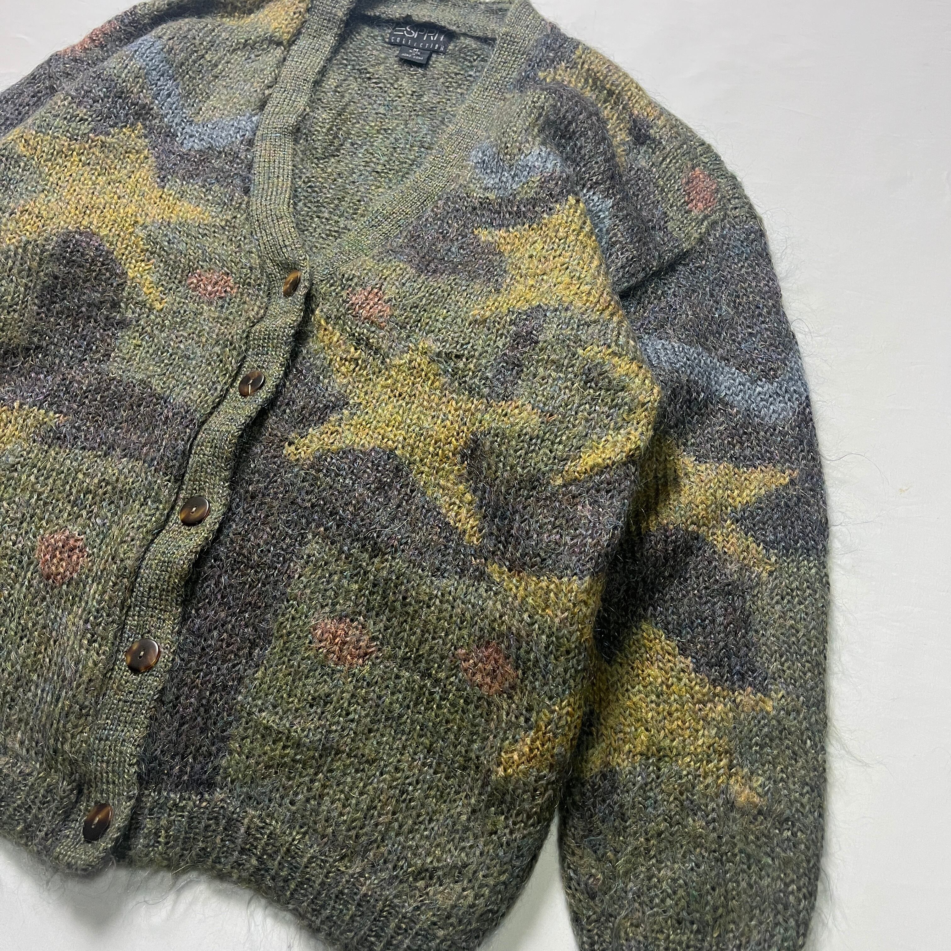80s ESPRIT 星柄 モヘアニット カーディガン エスプリ