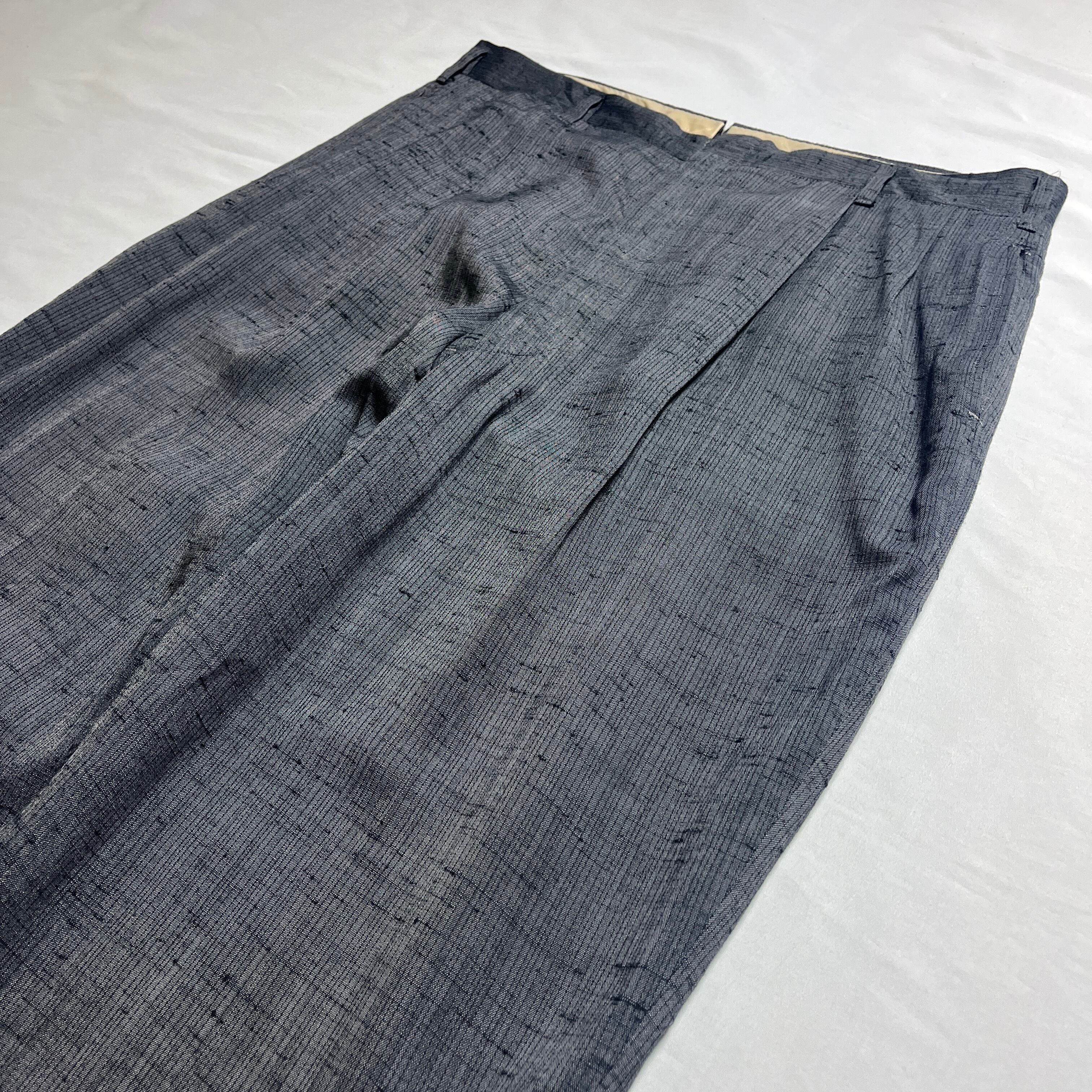 〜60s リネン×レーヨン ネップ カスリ柄 ツータック スラックス