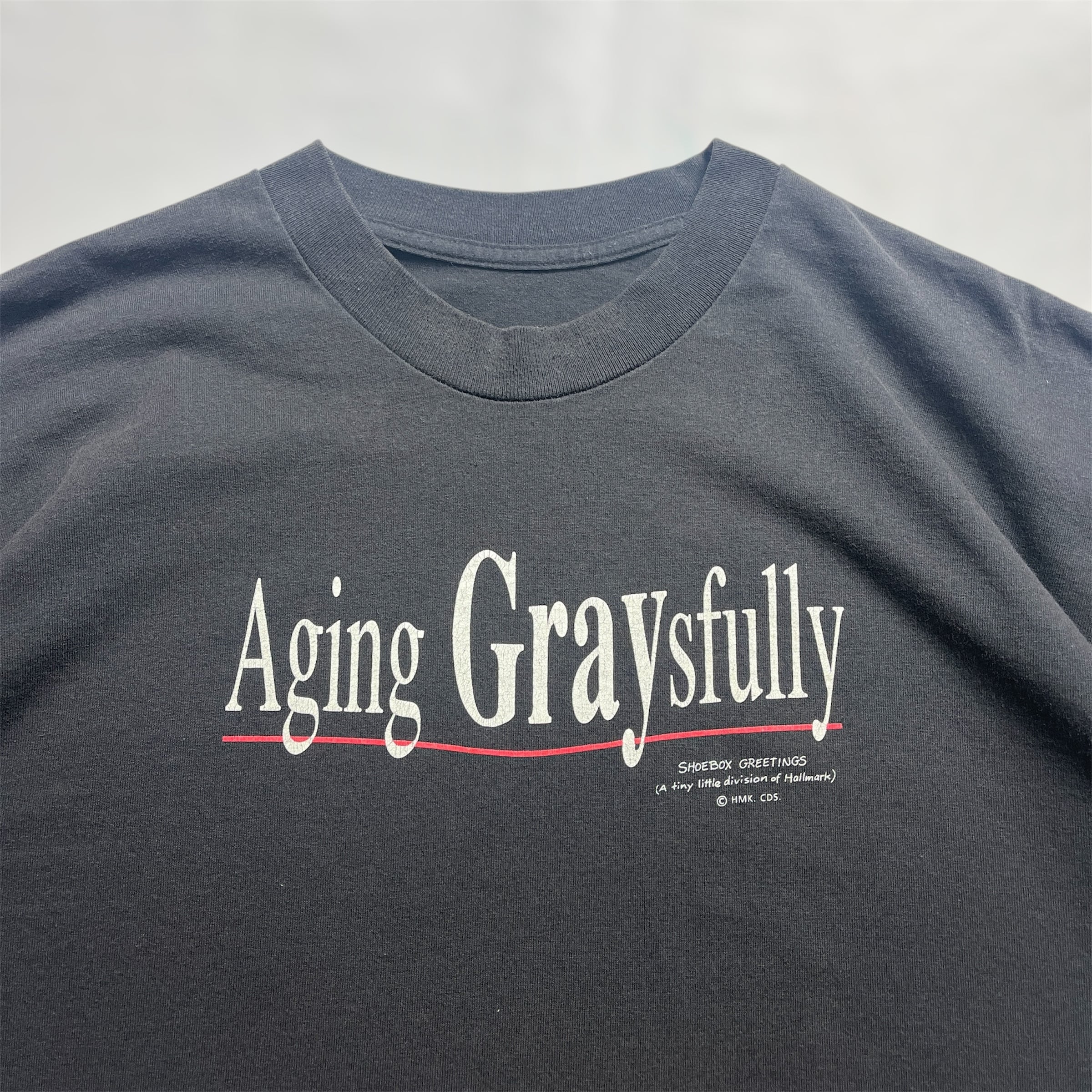 90s SHOEBOX Aging Graysfully メッセージTシャツ シューボックス